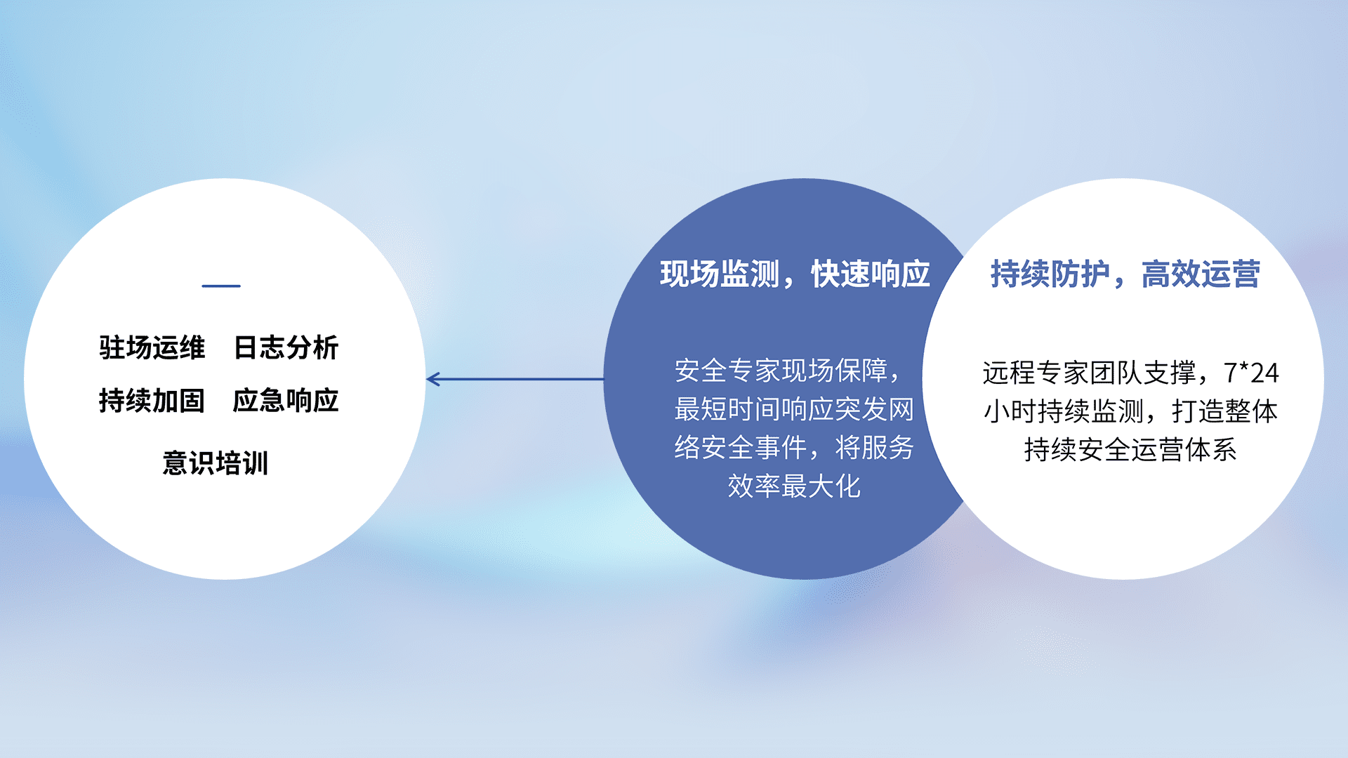 针对客户行业特性,,,,提供专属的一站式安全管理服务,,,帮助客户全面感知网络空间威胁,,通过安全专家的线上、、、线下防护支持,,,,实现风险闭环,,,,将安全保障常态化,,为客户打造常态化安全运维运营服务。。。